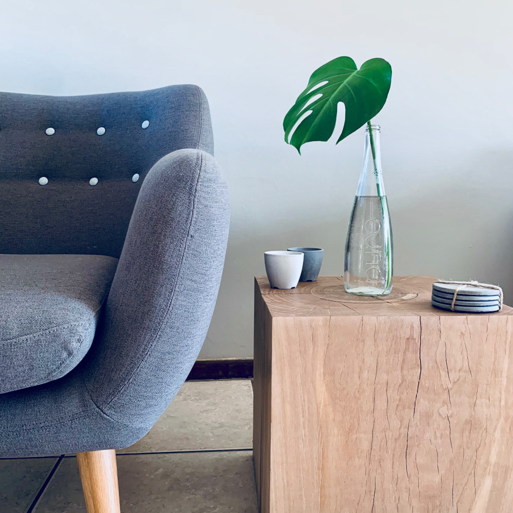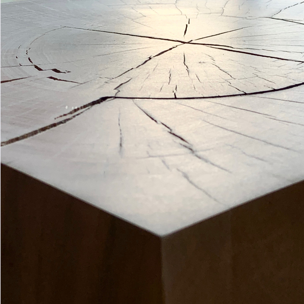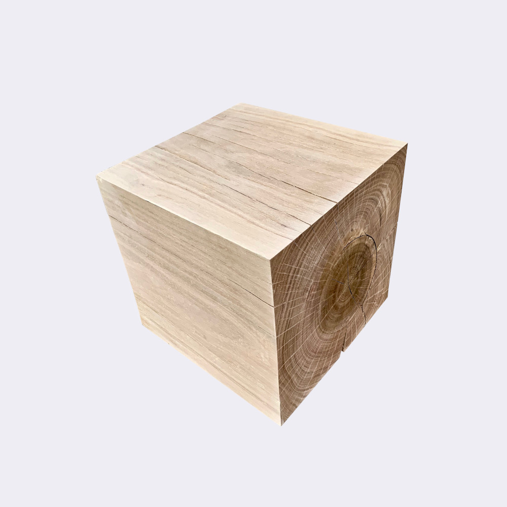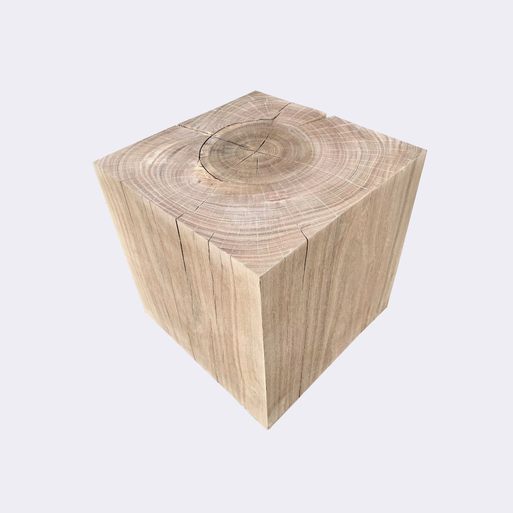 Solid Sugar Gum Cube, with optional rubber footings. Perfect to use as an occasional table, bedside stand, or a feature piece in any social space.