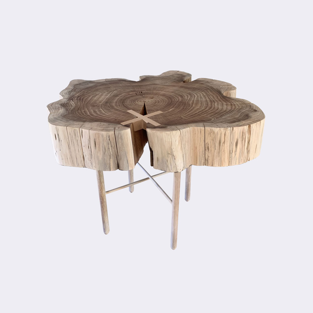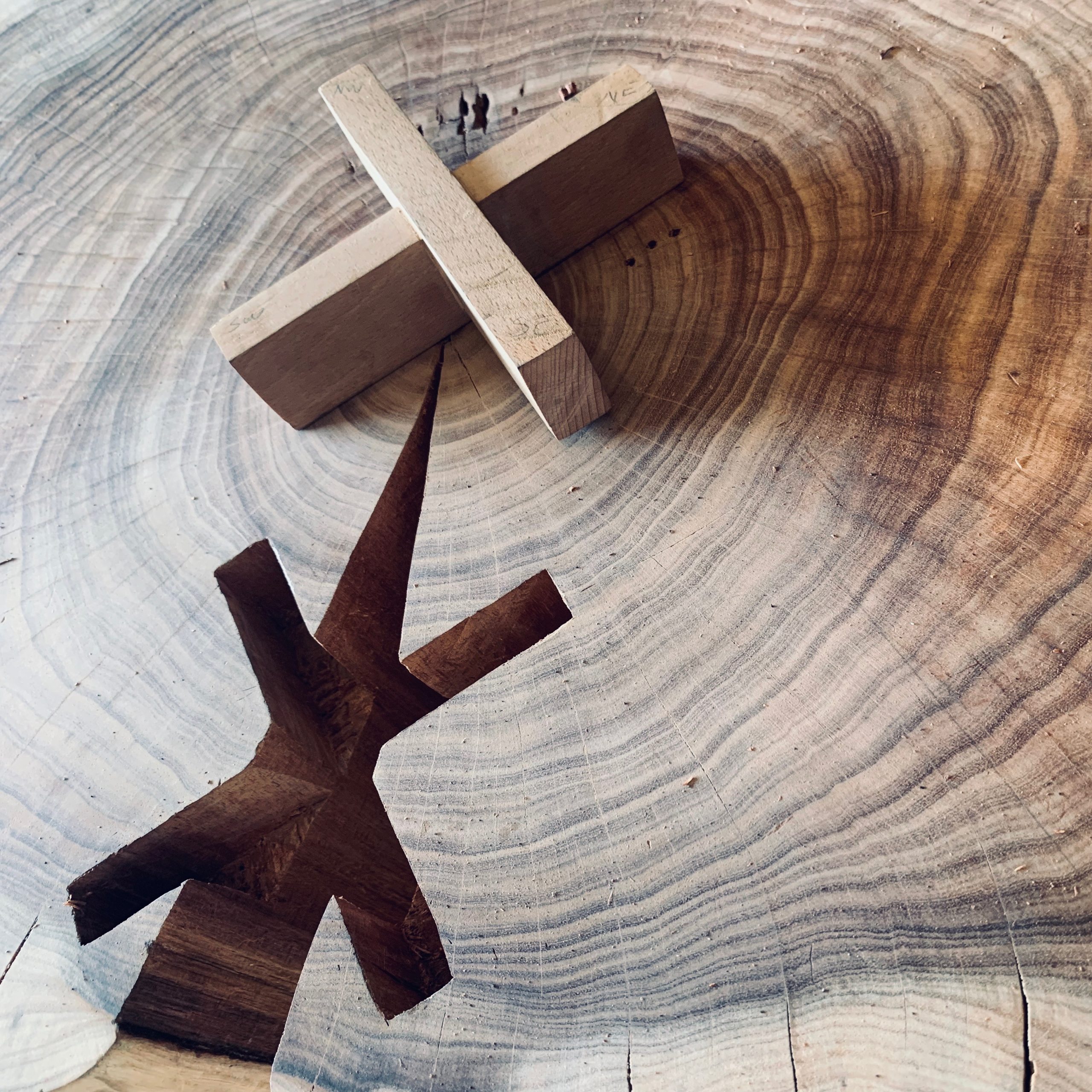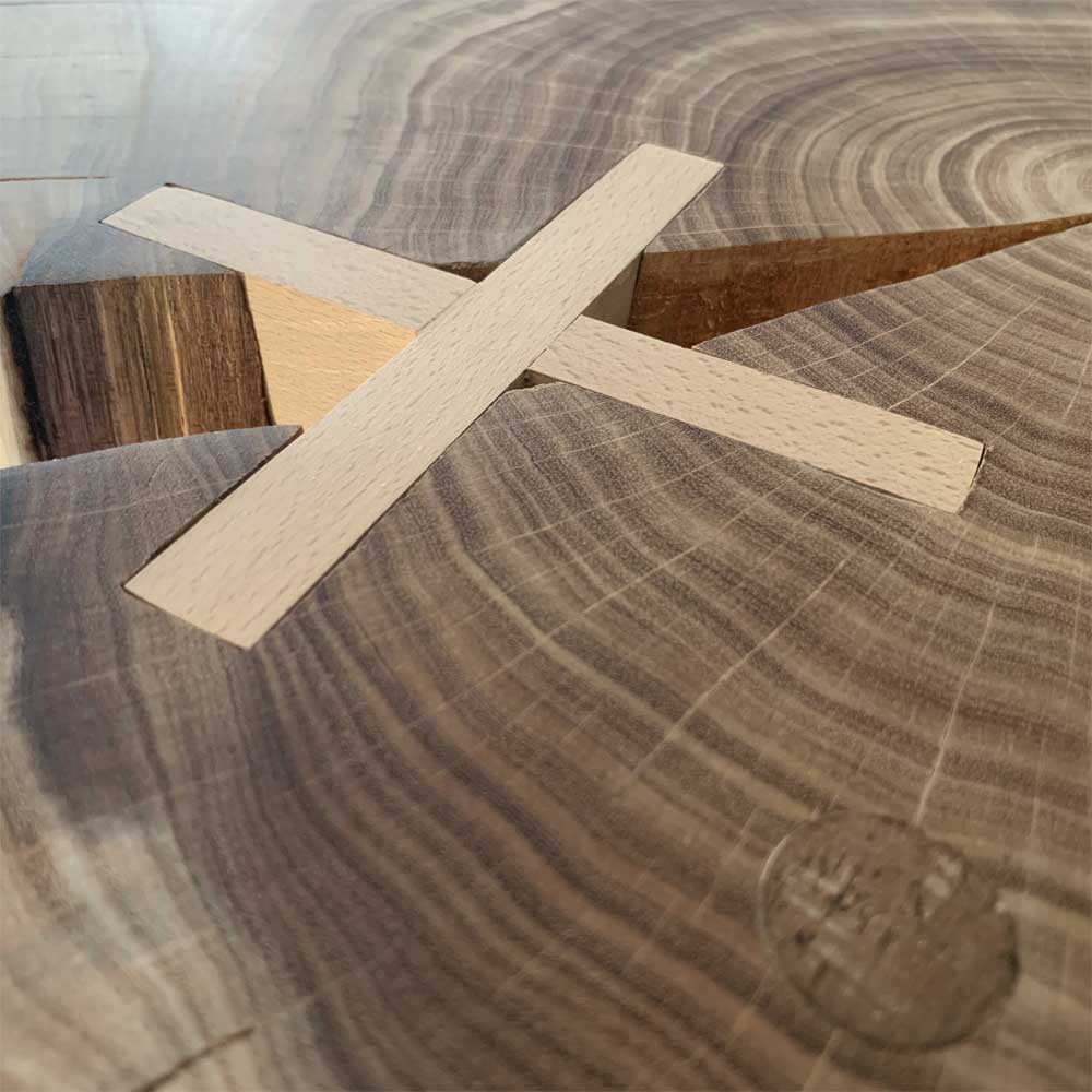 Medium sized Blackwood table, with hand cut ,and chiseled, Contemporary Swiss Cross Detail.